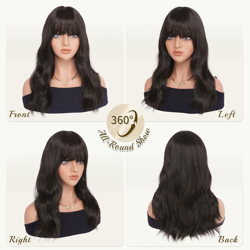 Long Ombre Brown Wavy Wig for Women 26 Inch Middle Part Curly Women's Charming Synthetic Wig with Natural Wavy Brown Heat Resistant Hair for Wedding Daily Party Use